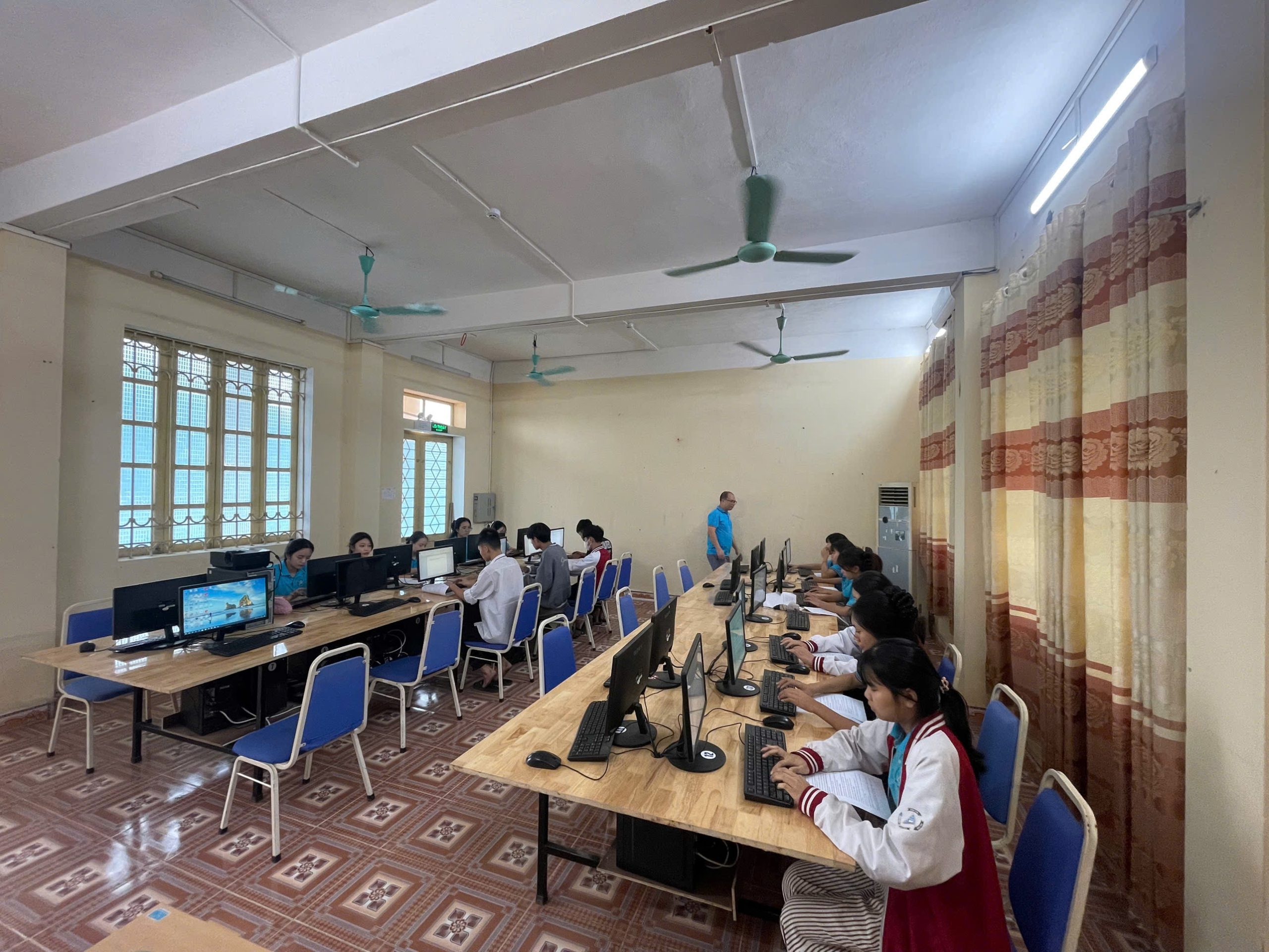(Hình ảnh các bạn học sinh khối 10, khối 11 tham gia thi đánh máy nhanh)